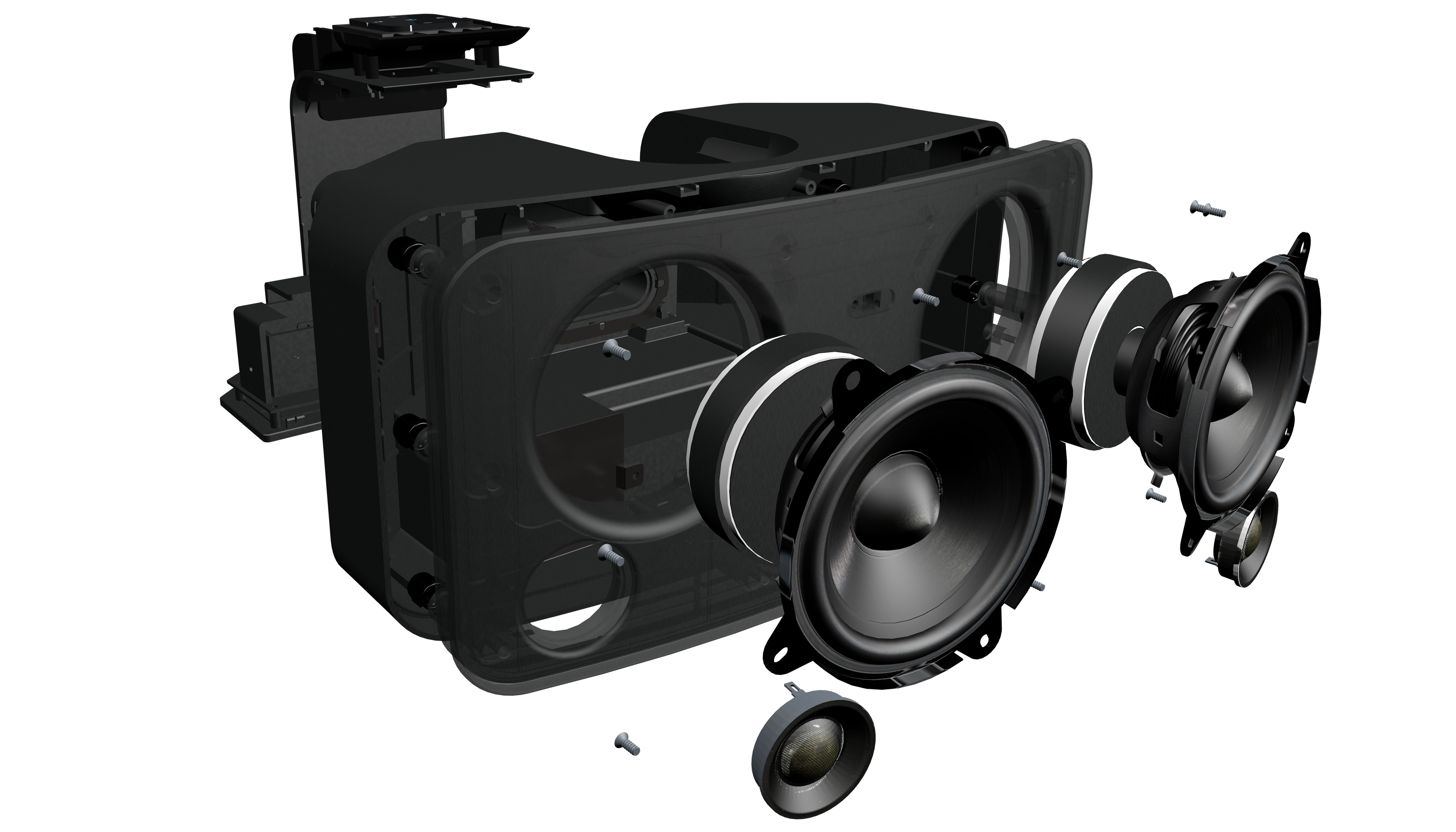- Überarbeitete Akustik-Kammer: Das Gehäusedesign wurde optimiert, um maximale Klarheit und ein weites Stereo-Klangfeld zu gewährleisten.