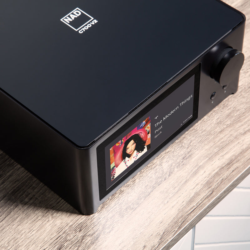 - Phono-Eingang (MM): Erstmalig verfügt der C 700 V2 über einen dedizierten Moving-Magnet-Phonoeingang, damit Sie Ihre Vinylschätze in gewohnter NAD-Qualität genießen können.