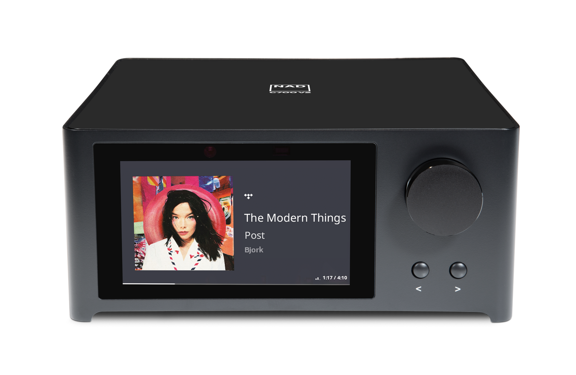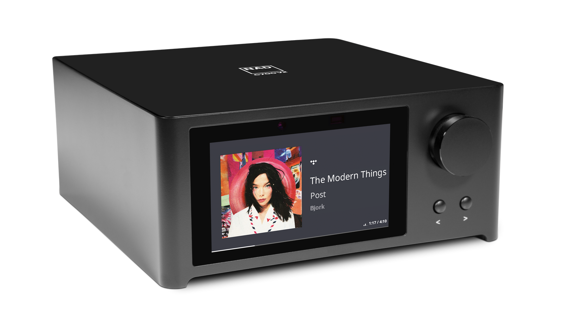 - Intuitive Bedienung: Das brillante 5-Zoll-Farbdisplay zeigt Cover-Art und Metadaten an, während die Bedienung über die BluOS-App oder die im Lieferumfang enthaltene Fernbedienung erfolgt.