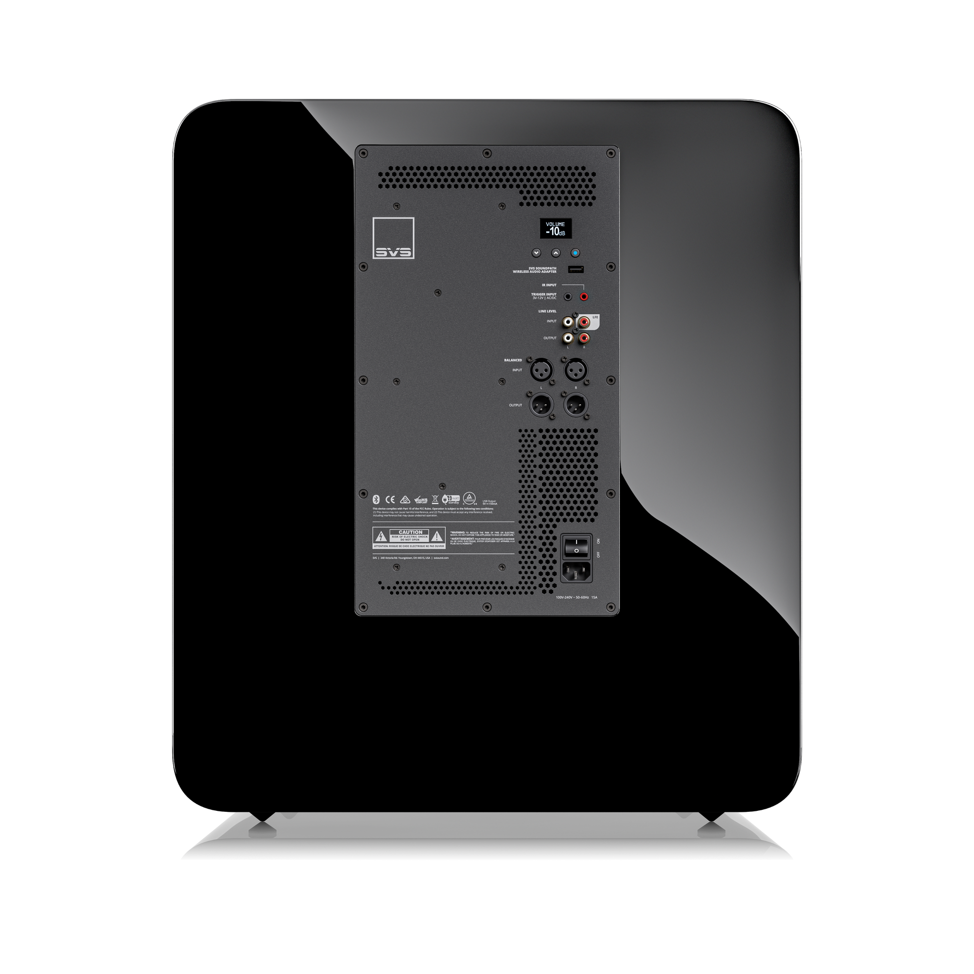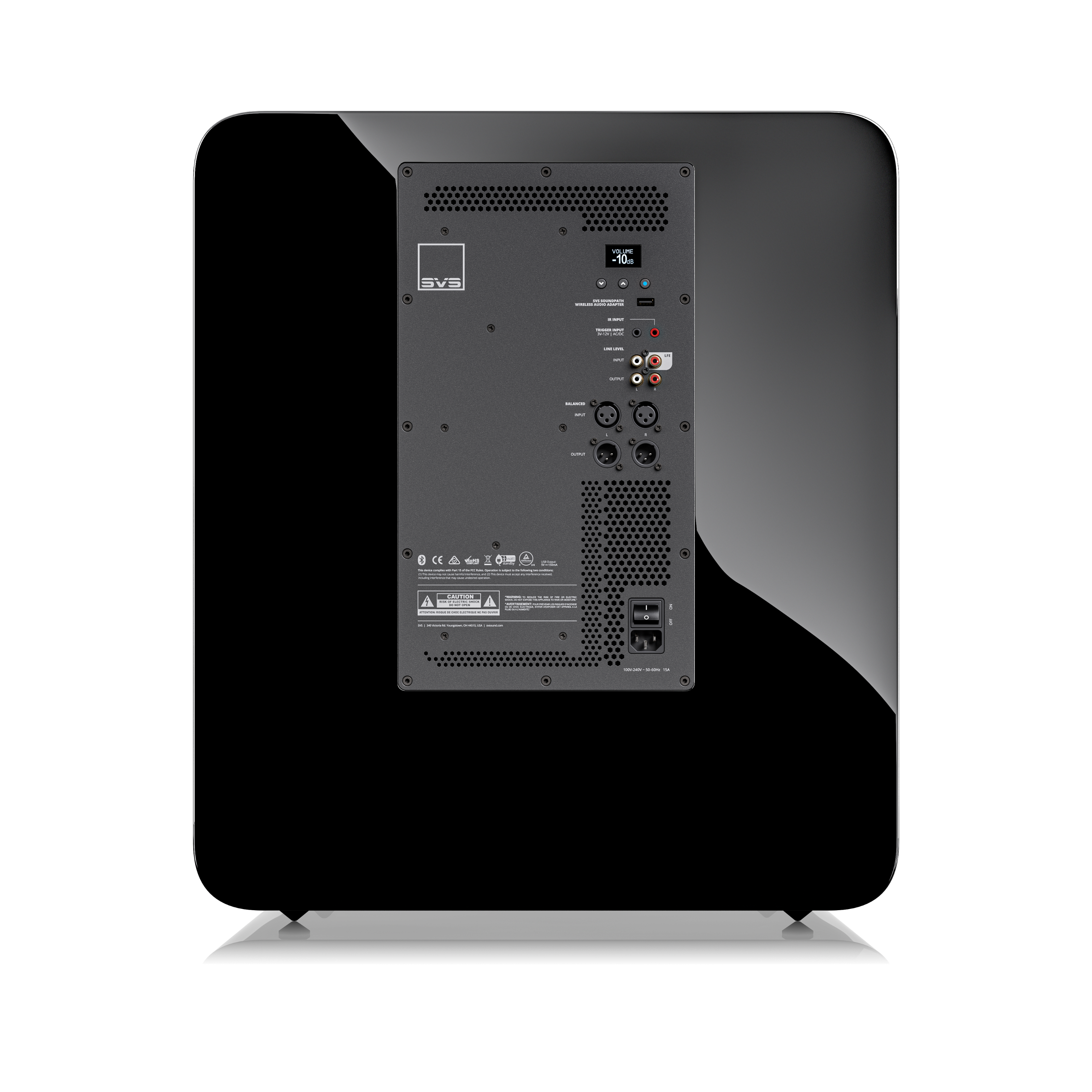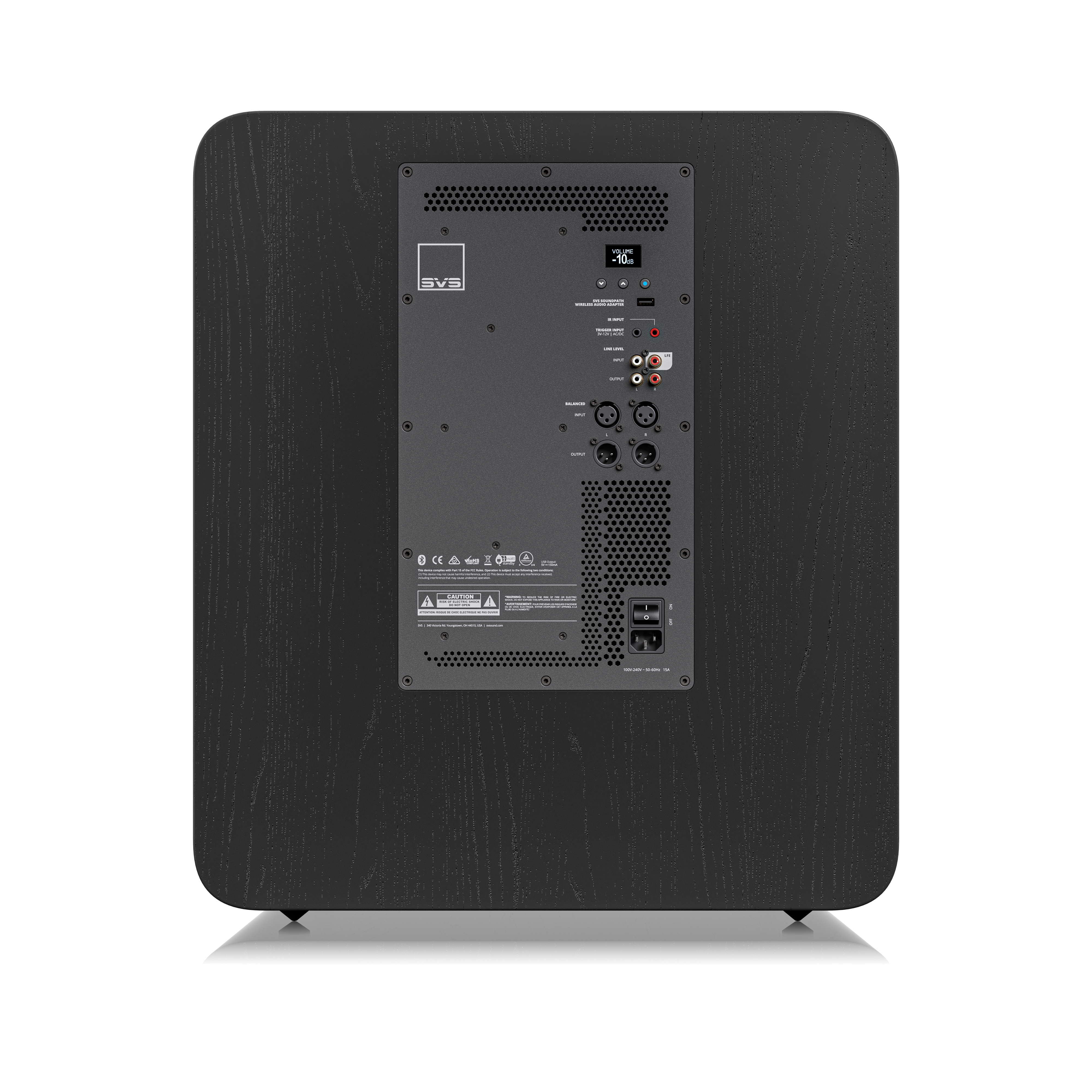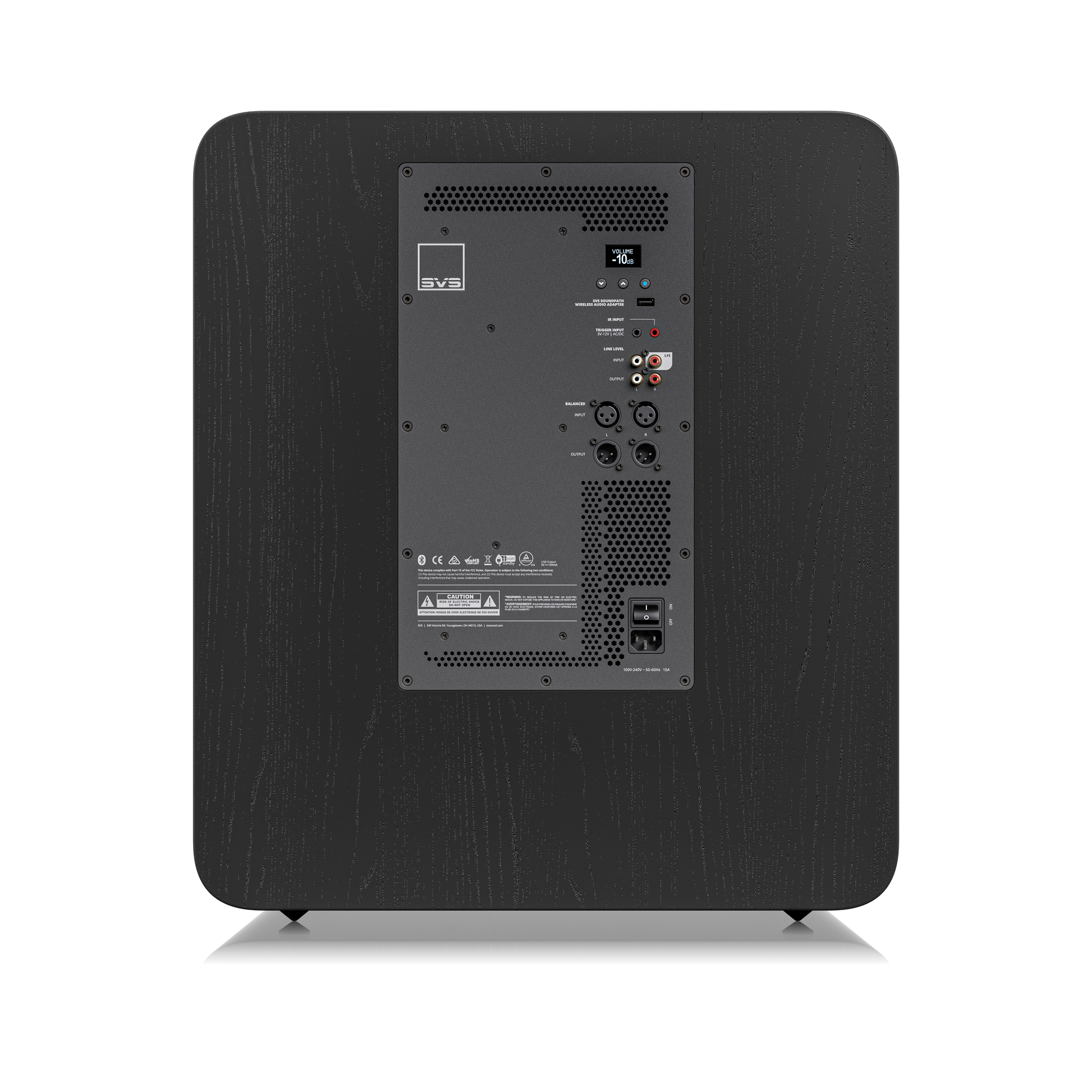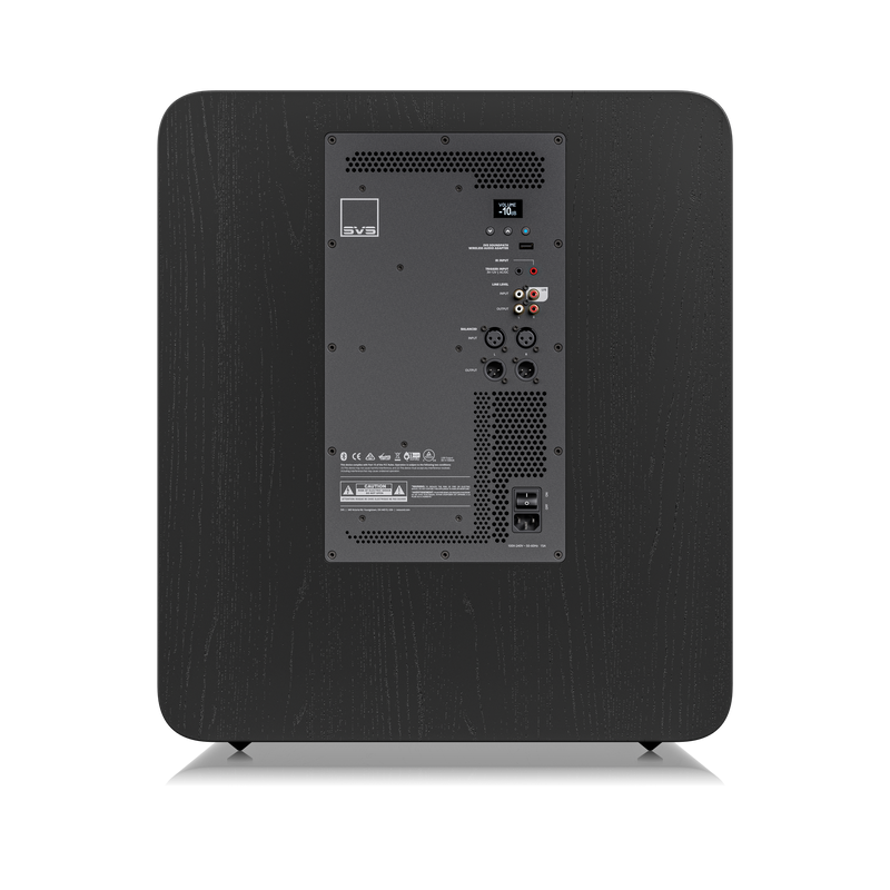 • USB-Anschluss liefert Strom für den SVS SoundPath Wireless Audio Adapter (separat erhältlich), wodurch das Verlegen eines Kabels vom Quellgerät zum Subwoofer entfällt.